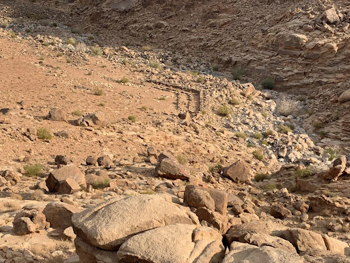 Located next to the altar is white marble slabs. Many of these slabs are carved in the shape of columns. Many have theorized that these columns could be the pillars mentioned in the Bible that Moses had built in Exodus 24:4 “…at the foot of the mountain, and twelve pillars according to the twelve tribes of Israel.” However, others have theorized that King Solomon came through later in history and had a memorial building built with the white marble from the deposit far up on Mount Sinai. The cutouts from that deposit are still there to this day. The white marble found on Mount Sinai is unique to just this mountain. An earlier explorer claimed to have found a piece of white marble next to Moses Altar with Paleo Hebrew on it that said Solomon on it. This piece was then buried in that location for protection to be dug up at a later time. Digging in Saudi Arabia is forbidden. Perhaps in the future we might finally get an answer.