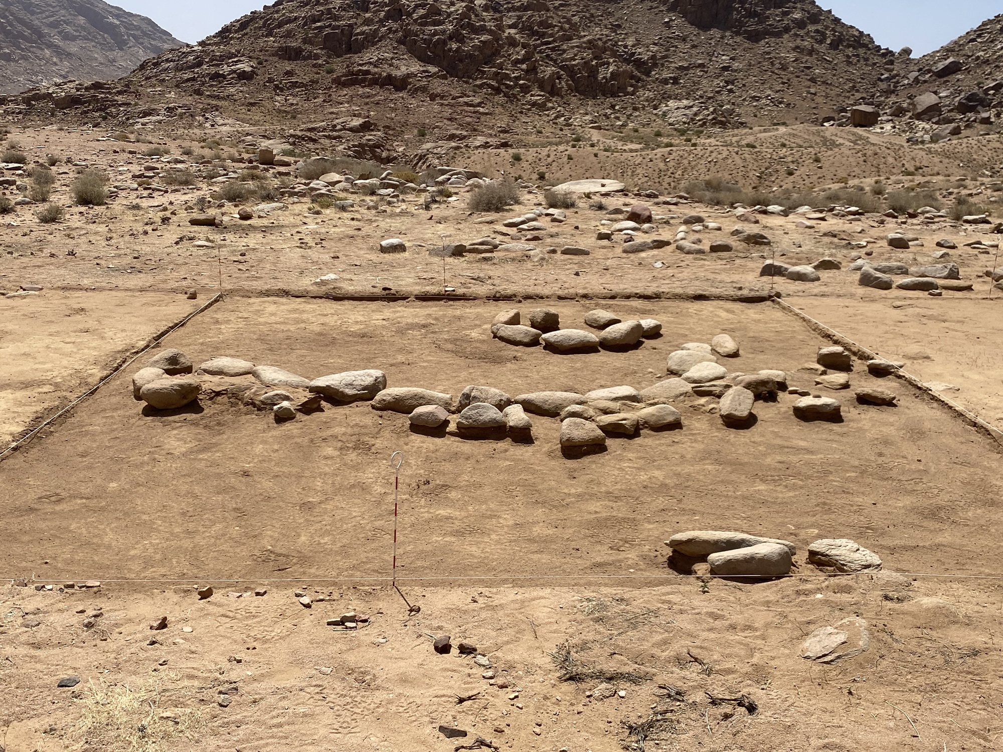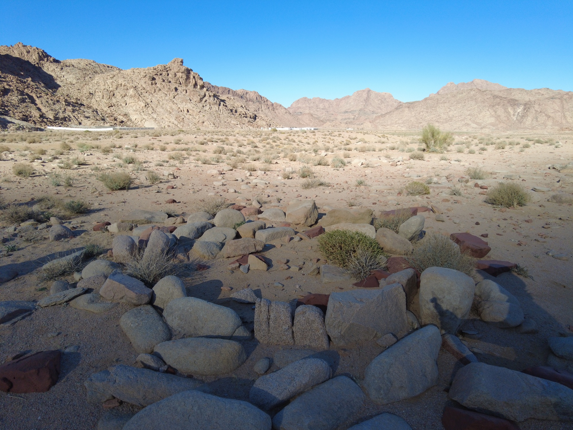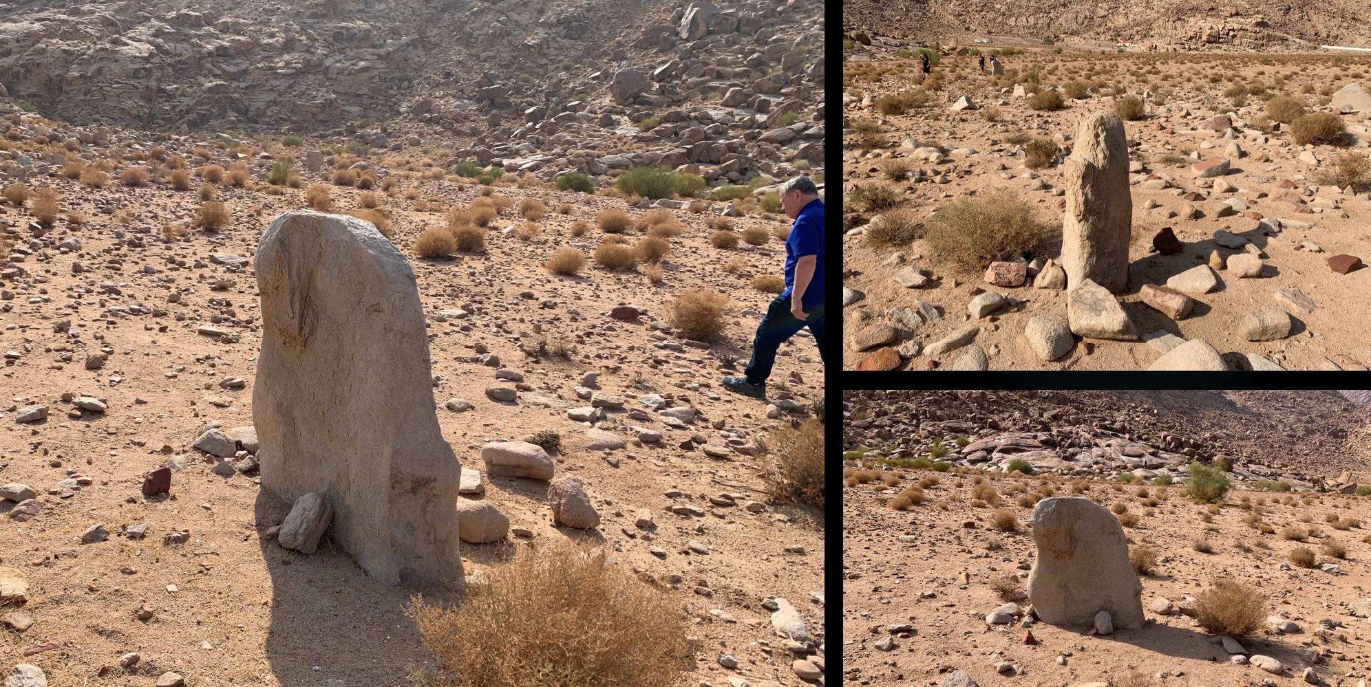 This cemetery is located approximately 5 miles away from the base of Mount Sinai in Wadi al-Abyad. It is located along the North path the Israelites would have travelled coming from the split rock. The cemetery is located at the base of some smaller mountains that connect to the Northern part of Jabal Lawz. It is commonly referred to as a megalithic site which simply means large old stones. The cemetery is very large and is roughly the size of 5 football fields. And it has been confirmed to be a mass burial site as human remains have been confirmed.