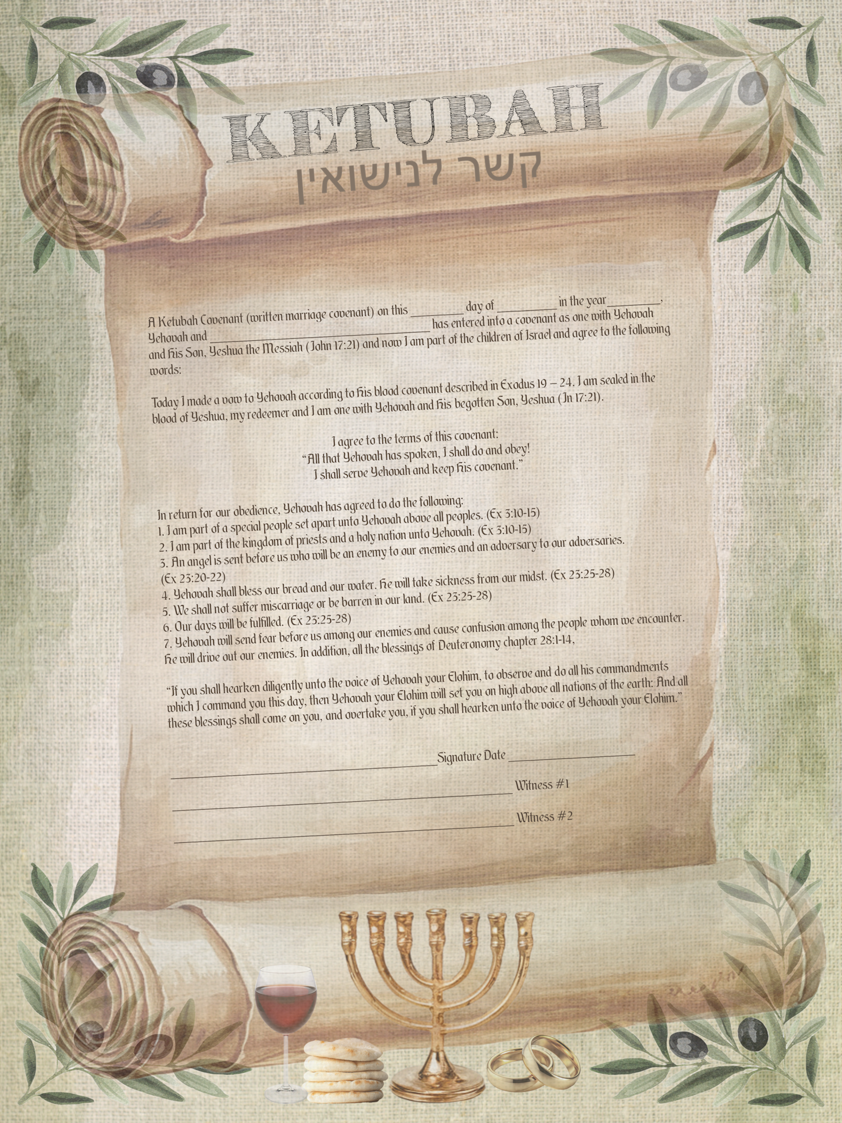 These beautiful frameable Ketubah's are courtesy of Cheryl Bell.